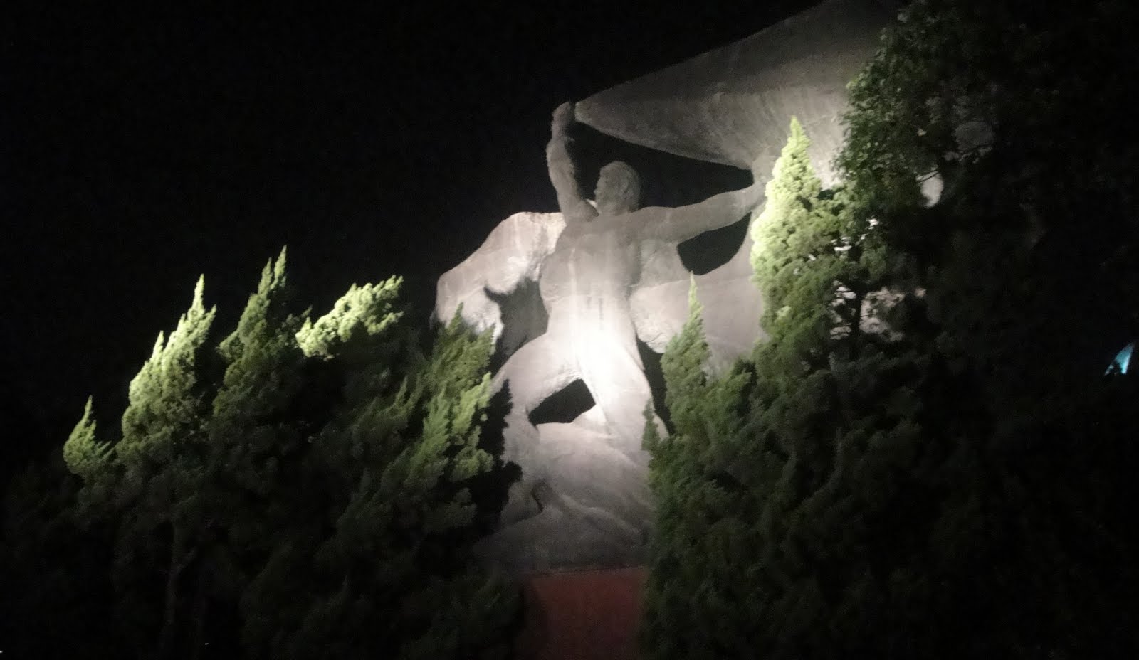 and as i walked along, haunting lighted figures with superman complexes would occasionally catch my eye. heroic salutes to communism, i deduced.